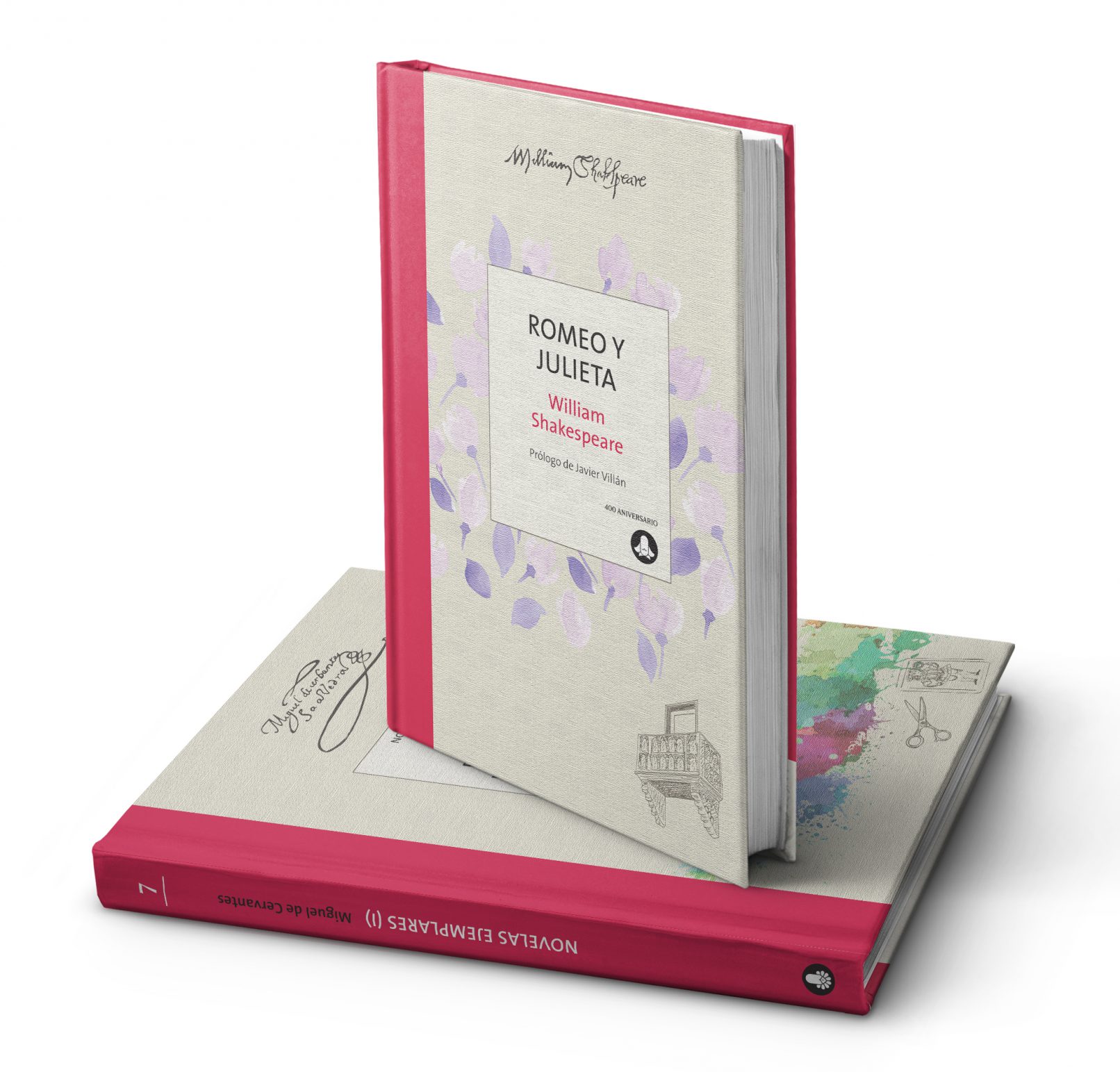 Con una cartela, fondos de acuarela, un pequeño dibujo tipo grabado de algún elemento representativo de la obra y la firma del autor, hemos creado una imagen clásica y moderna a la vez. Con una tipografía limpia y una estructura muy ordenada, las cubiertas hacen un guiño a lo tradicional imitando la encuadernación «a media tela» mediante el color rojo del lomo y el uso de un papel texturado para cubrir las tapas. Una edición actual para las obras de los, posiblemente, mayores genios literarios de la historia.