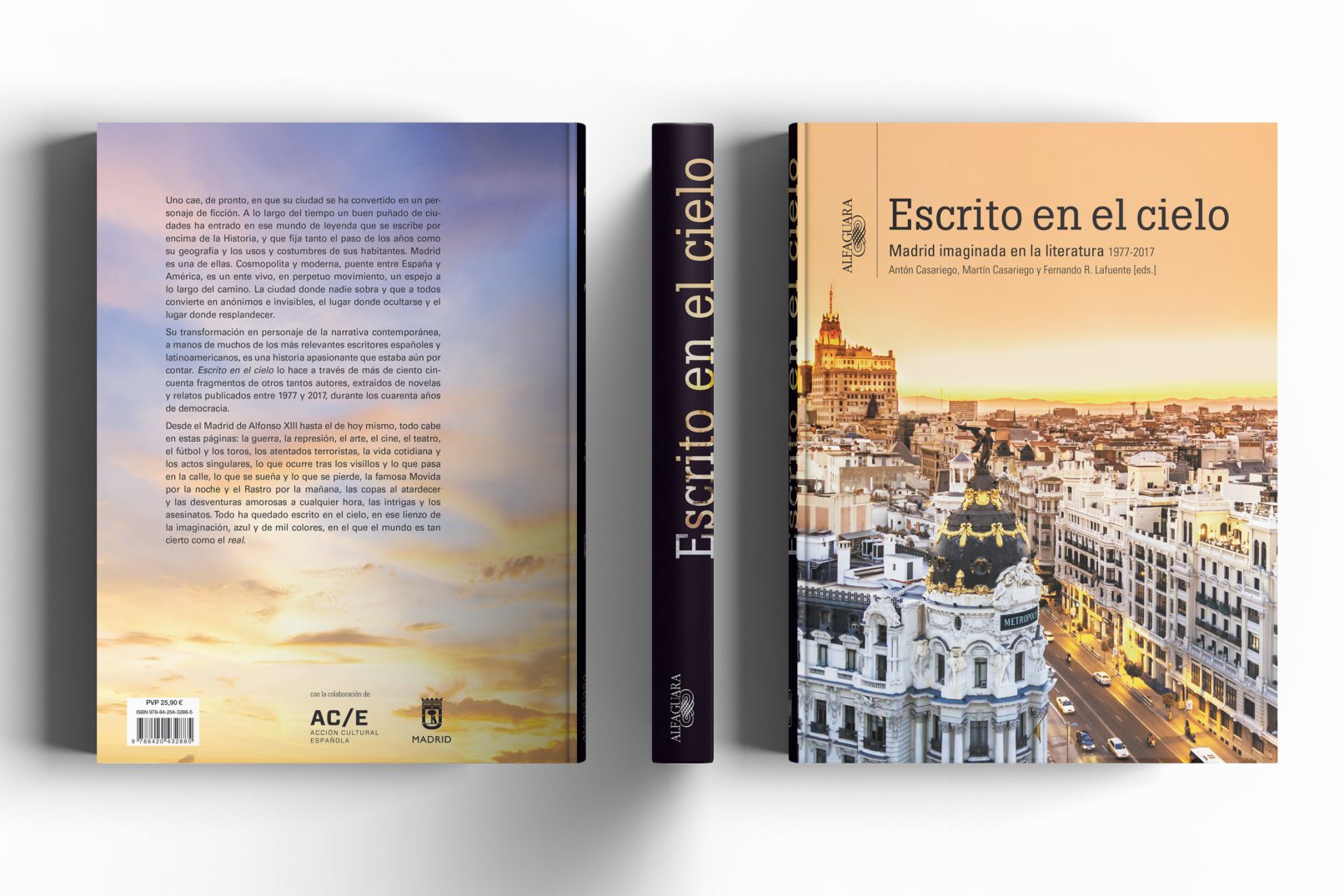 Escrito en el cielo es un libro en el que ZAC ha participado en todas sus etapas de producción, desde la idea original, que surgió al ser Madrid elegida ciudad invitada de honor en la Feria Internacional del Libro de Guadalajara de 2017, hasta su impresión, pasando por la selección y edición de los textos (en colaboración con Martín Casariego y Fernando R. Lafuente). El resultado final es fiel a lo inicialmente imaginado: que a través de 154 fragmentos de relatos y novelas ya publicados, de otros tantos escritores, se mostrara la vida de una ciudad, la interior y la exterior, la íntima y la pública, su aspecto, su historia, las oportunidades que brinda, los espectáculos que ofrece, sus cafés, estadios, museos, bares y calles.
