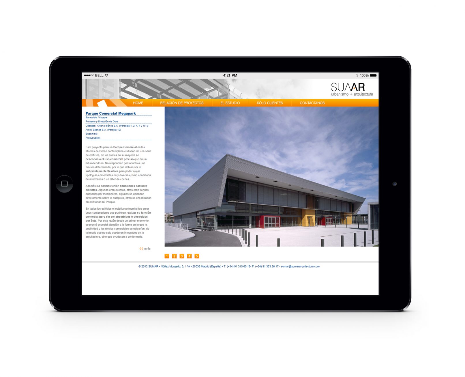 La página web es sencilla y funcional, y en ella se da protagonismo a las fotos de los edificios y espacios proyectados por los técnicos de la empresa: www.sumararquitectura.com
