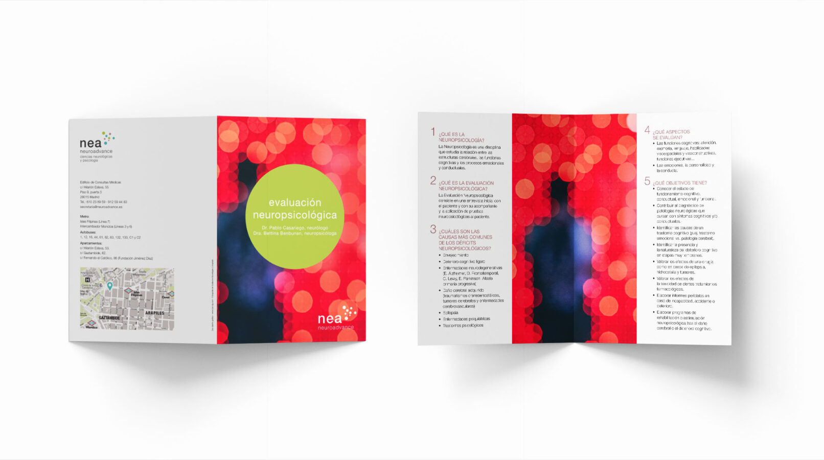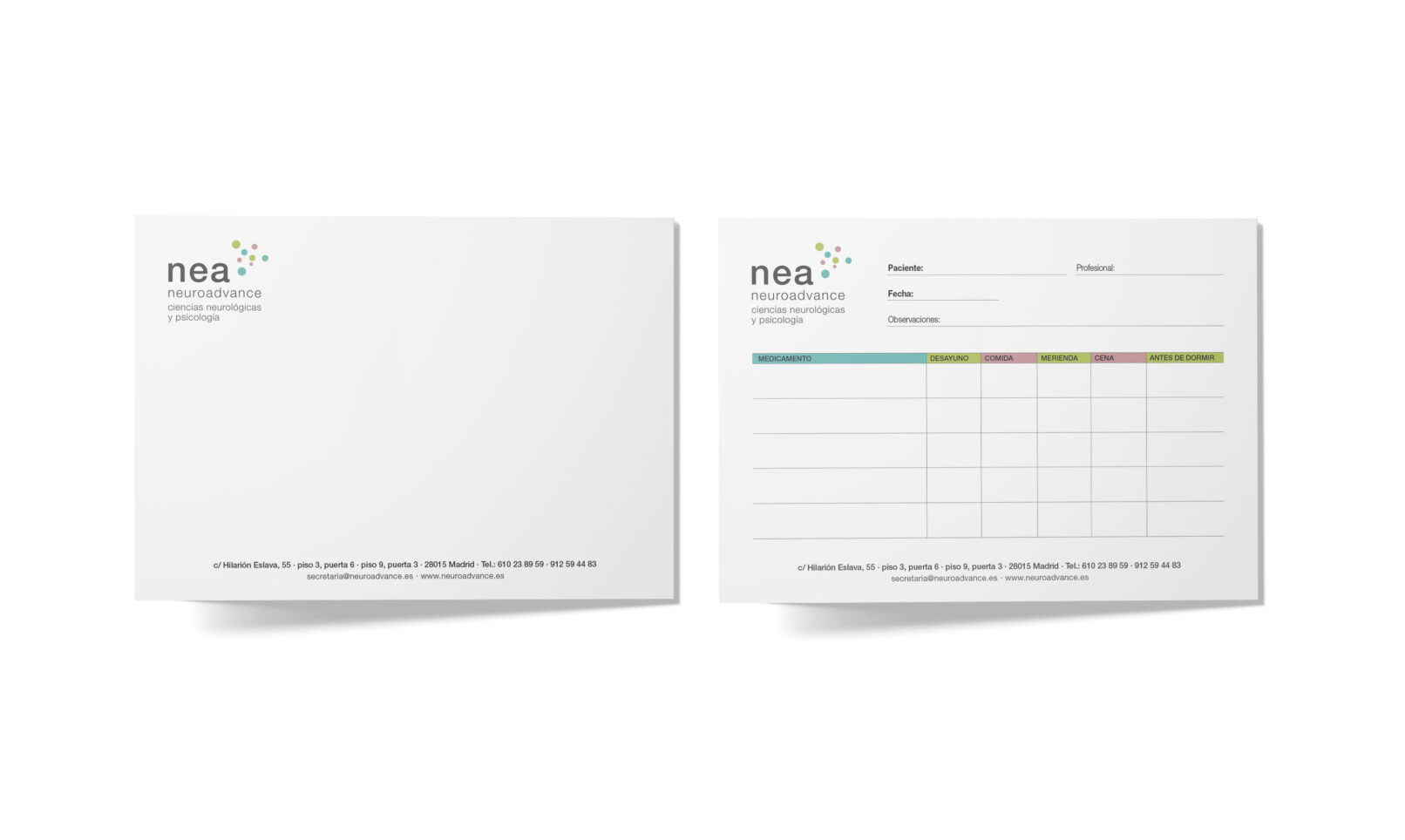 Neuroadvance es un nuevo centro médico especializado en ciencias neurológicas y psicología. Lo primero que propusimos fue trabajar con el acrónimo «nea», pues consideramos que «neuroadvance» es difícil de escribir y pronunciar para alguien que desconozca el inglés. De este modo, el centro médico tendría un nombre corto y fácil de recordar.