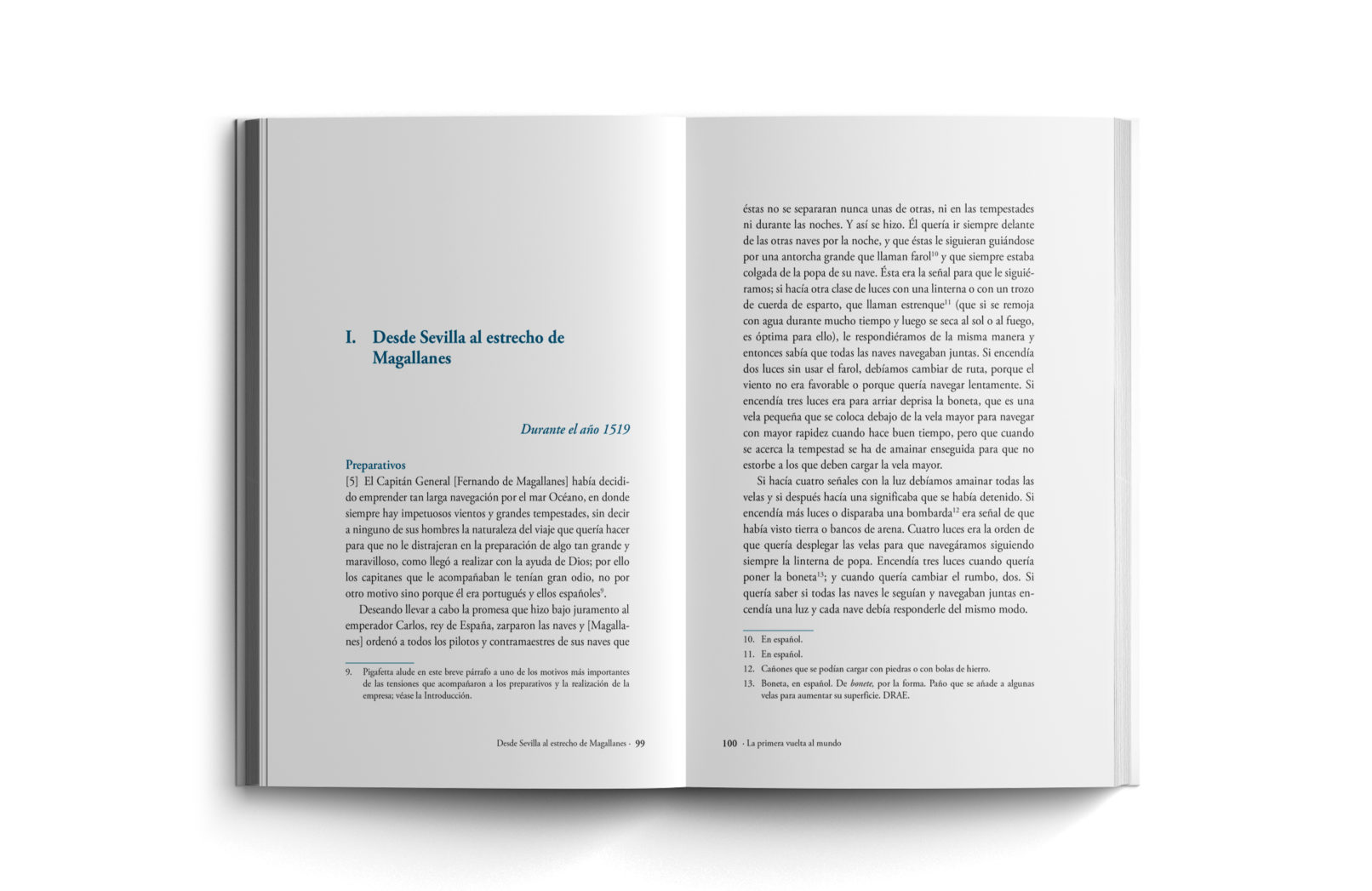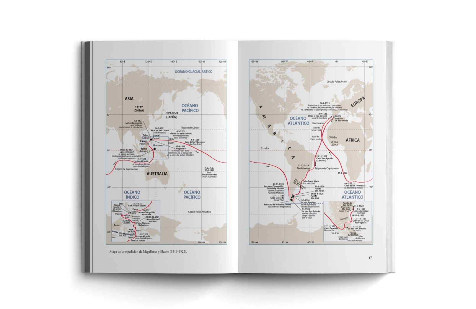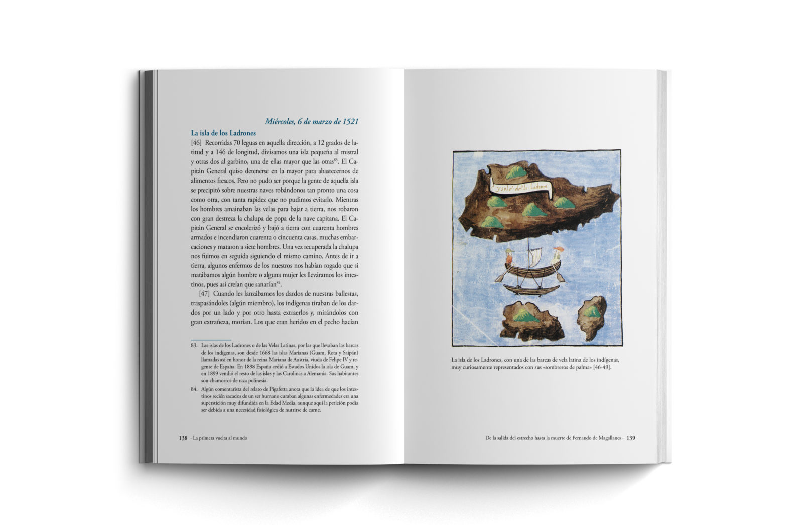 Este libro, escrito en forma de diario, es un clásico en el literatura de viajes y descubrimientos; en 2019 se celebraba el quinto centenario del inicio de la inmensa aventura que narra: la primera circunnavegación del globo. El encargo consistió en convertir en trade lo que era una edición de bolsillo, y a la vez colaborar en la actualización y revisión del texto. Aparte del cambio de formato, a mayor tamaño y tapa dura, el concepto trade exige ofrecer más al lector, lo que se consiguió haciendo que la edición fuera, además, ilustrada.