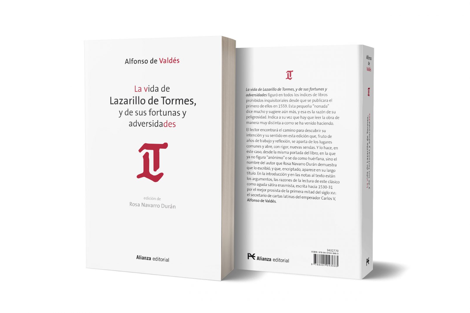 Dentro de una serie de libros fuera de colección, Alianza Editorial ha reeditado La vida del Lazarillo de Tormes, con un estudio de Rosa Navarro que otorga la autoría a Alfonso de Valdés. Uno de los datos que sustentan esta teoría es el de que en el título se encuentra escondido su apellido, y en la cubierta lo hemos resaltado mediante un cambio de color de las letras correspondientes.