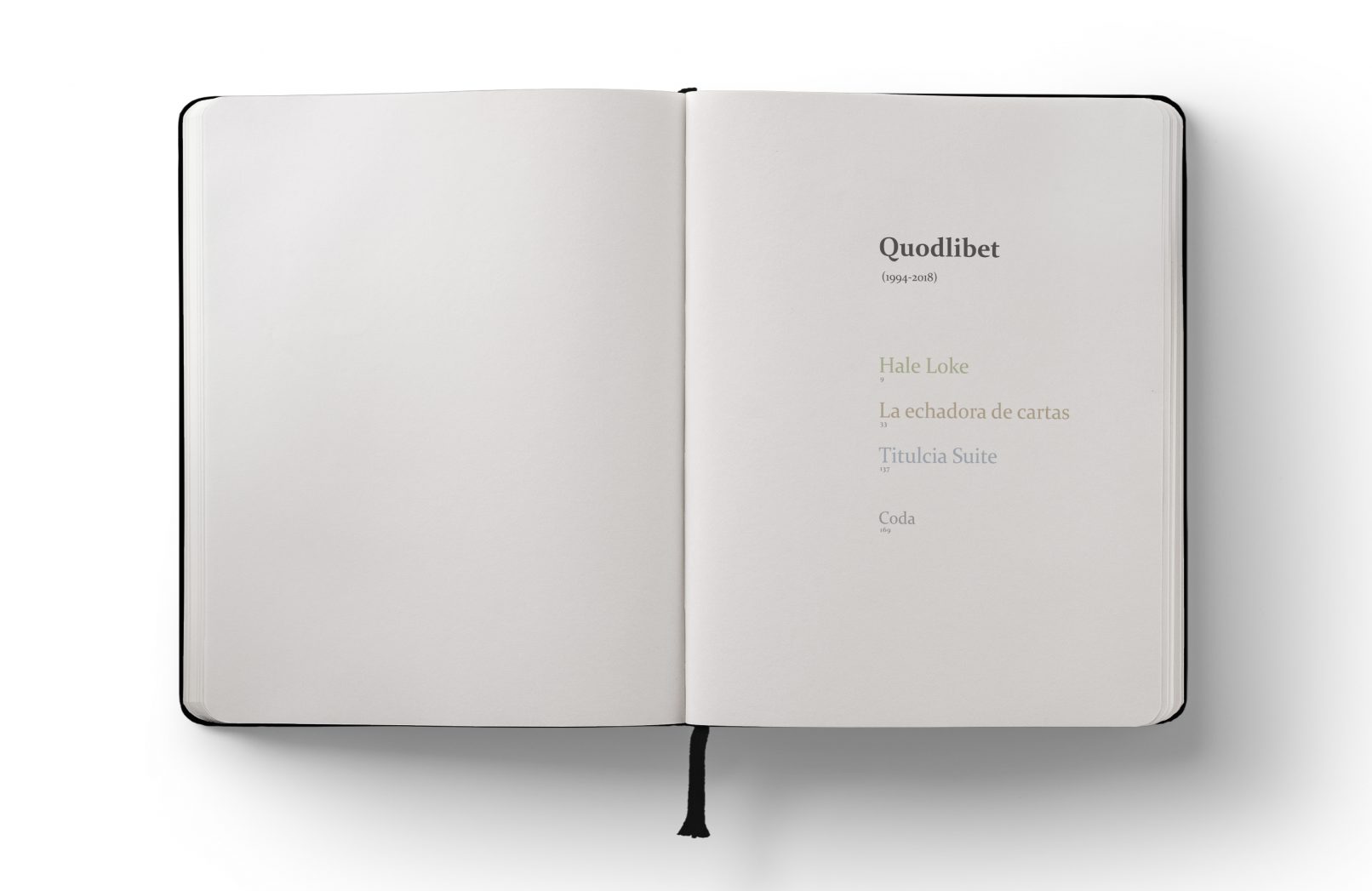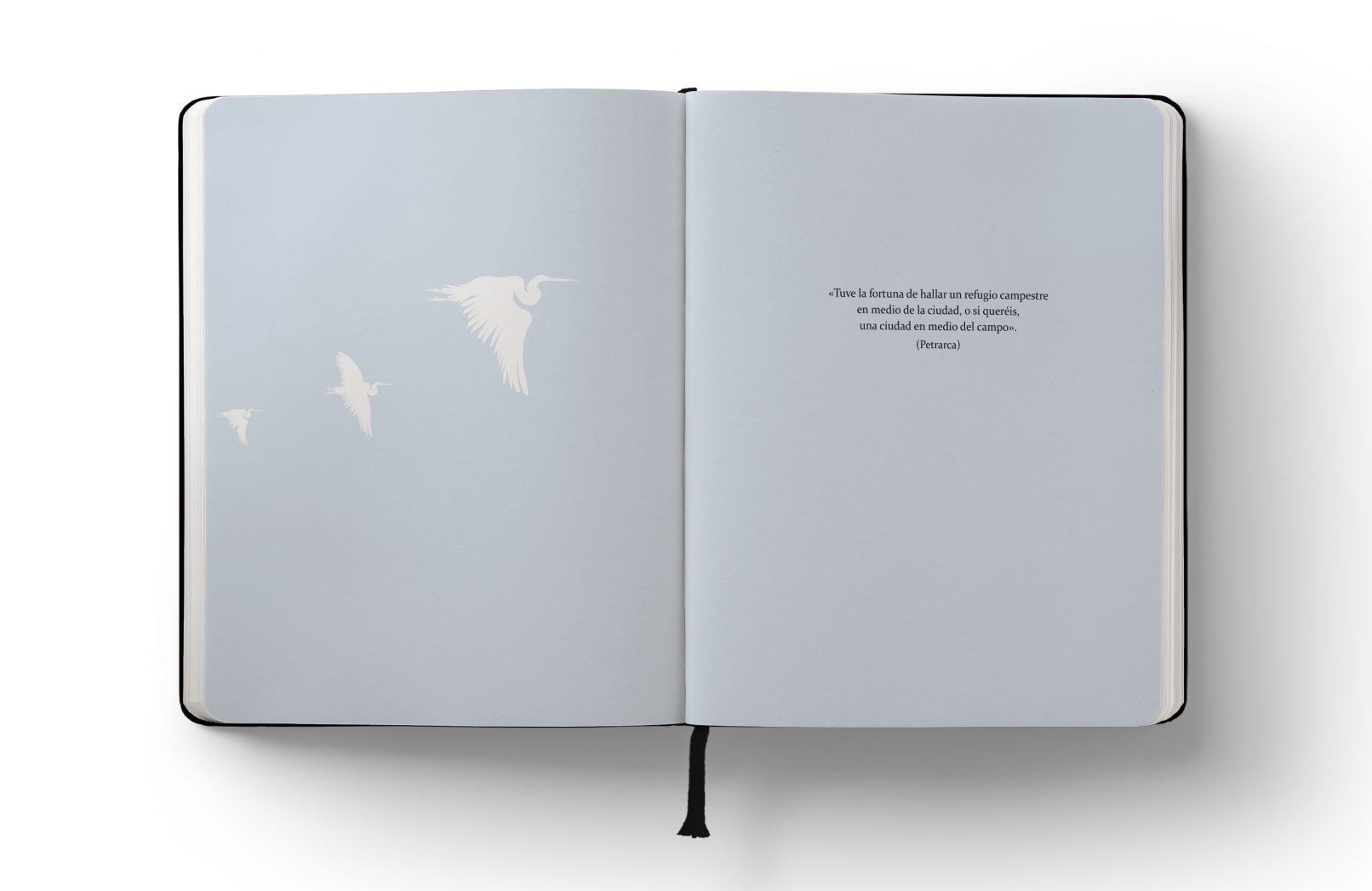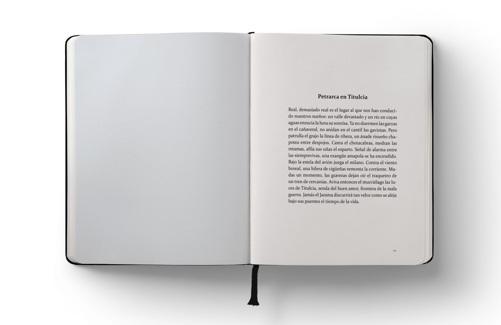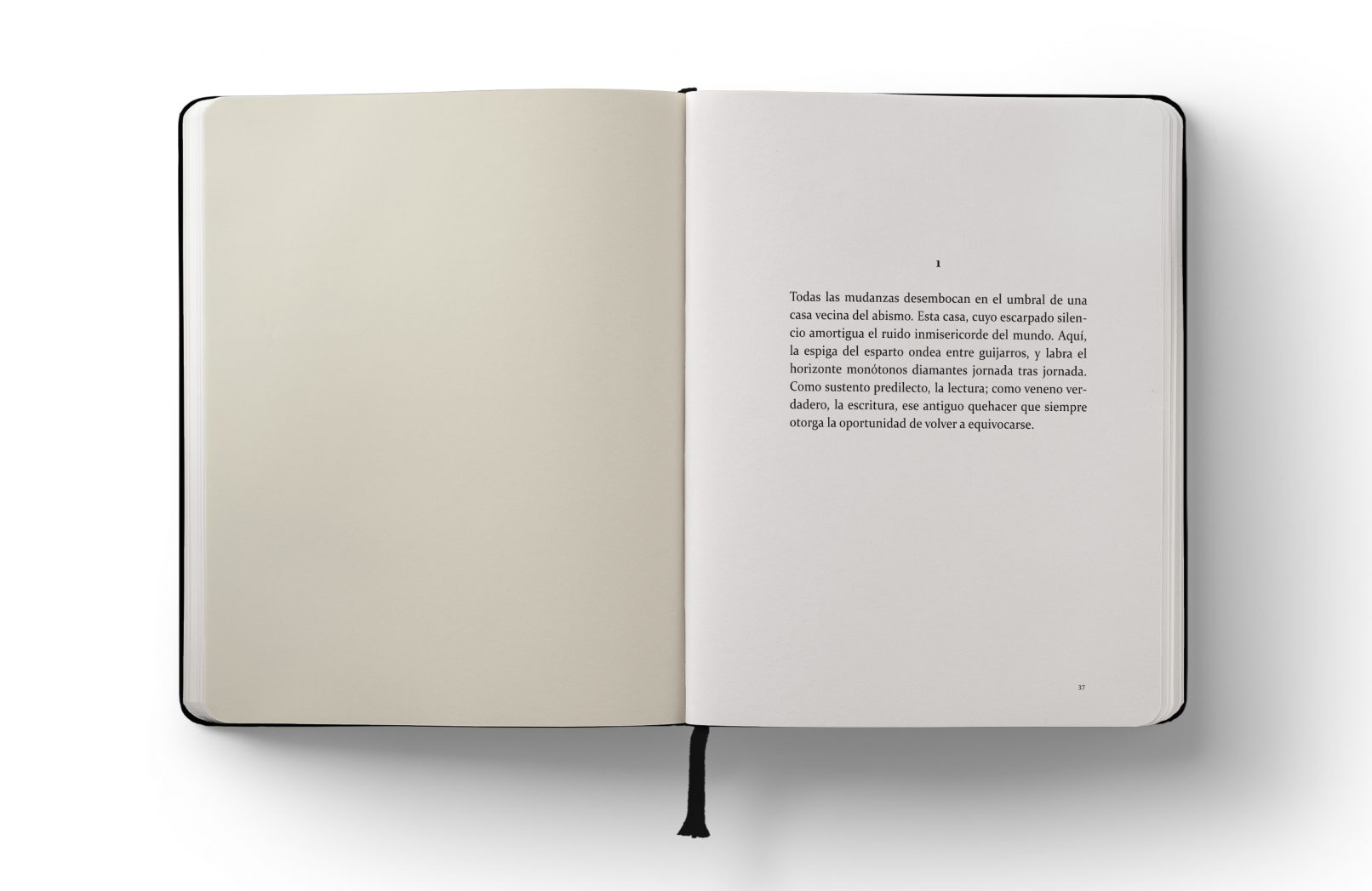 Pero como tantas veces pasa, el propio tiempo, con la ayuda de la constancia, fue aportando soluciones. La idea de «testamento», de texto definitivo nos llevó a imaginar una cubierta que tuviera algo de «bíblico», con un fondo negro y estampación en oro. Aparte de la Biblia, otra referencia más modesta fueron las agendas Moleskine, y la cubierta también se quiso aproximar a ellas, al comprobar que el libro tenía además algo de cuaderno de viaje. Nos dimos cuenta de que las tres partes en las que está dividido se podían asociar al agua, a la tierra y al aire, en el camino de ese viaje que es la vida. Y que podrían tener colores: verde, arena y azul cielo, en una gama matizada y utilizada con delicadeza en las páginas interiores. Por último, decidimos mantener la tipografía del documento Word original, por su clasicismo renovado y su legibilidad, aparte de por su nombre, tan apropiado para este proyecto: Constantia.